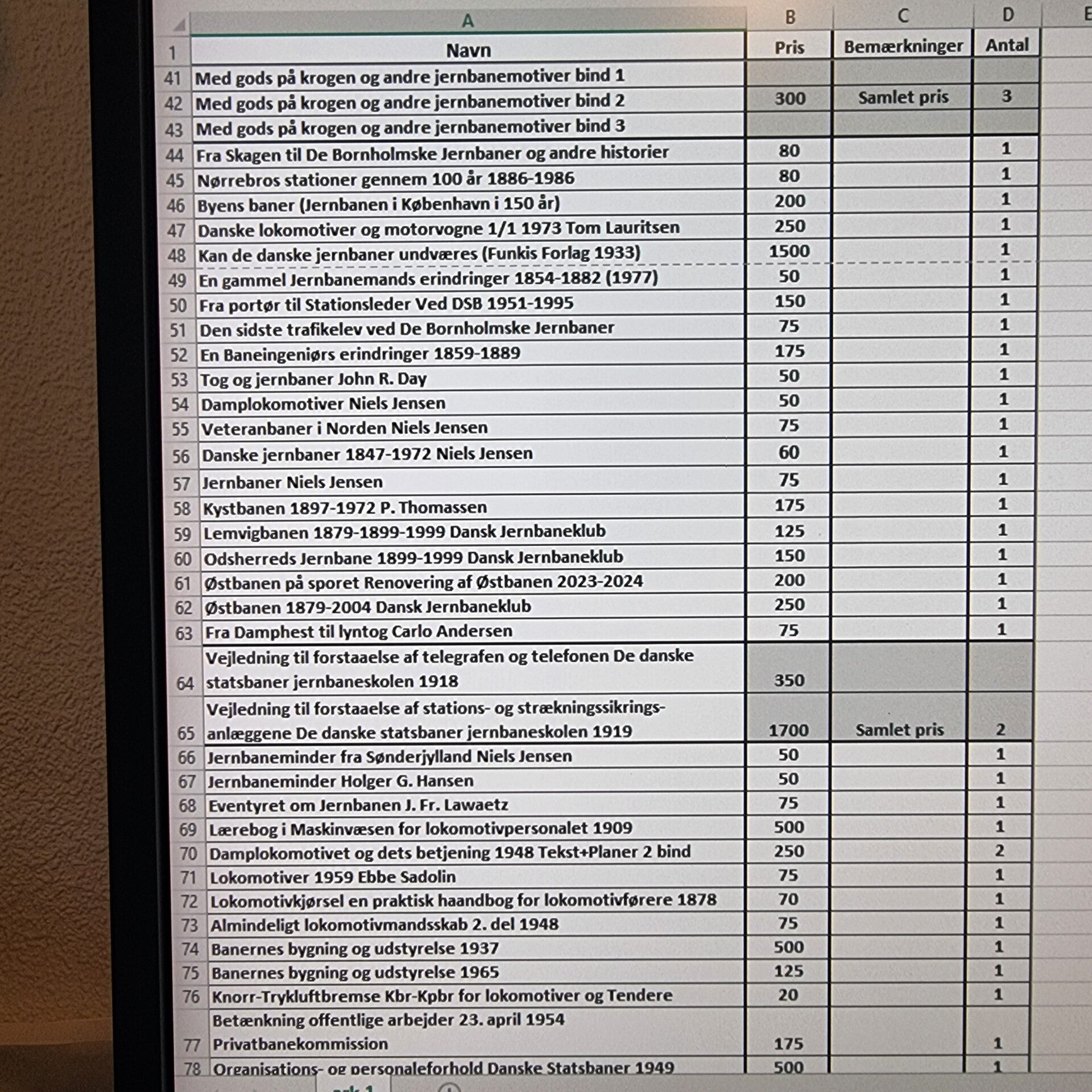 Liste over danske jernbanebøger og fortællinger. Unikke eksemplarer iblandt. Foto af bøger kan naturligvis fremsendes.
